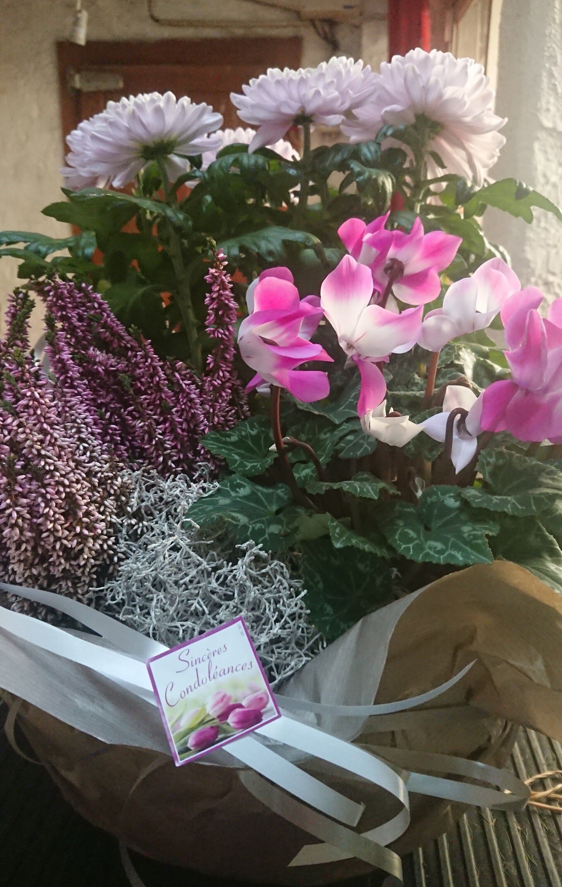 Nous vous proposons des compositions florales personnalisées, avec un ruban portant votre message. Celles-ci sont réalisées selon vos souhaits ainsi que ceux du défunt.